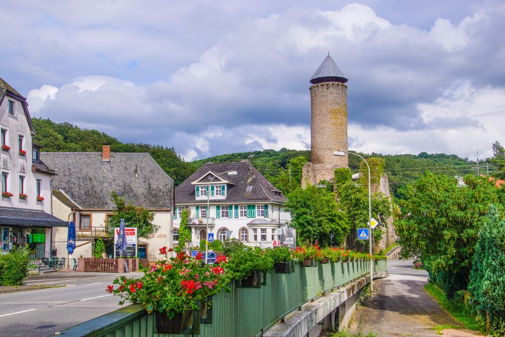 Von der einst stolzen Burg am oberen Lauf der Nahe ist nur noch der ca. 20 Meter hohe Bergfried erhalten, der bis heute das Ortsbild von Nohfelden prägt. Von der Aussichtsplattform aus kann man einen herrlichen Ausblick in das Nahetal genießen.